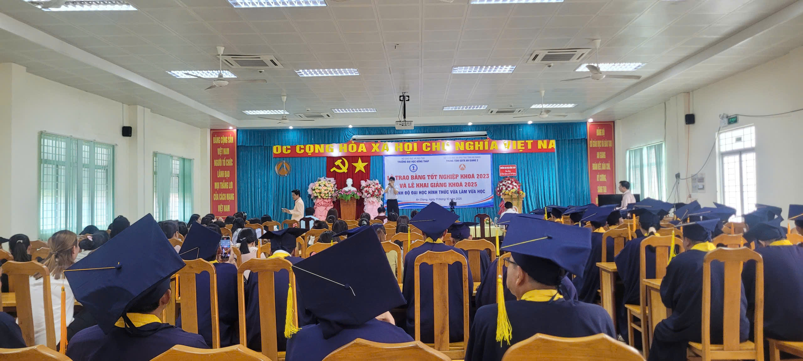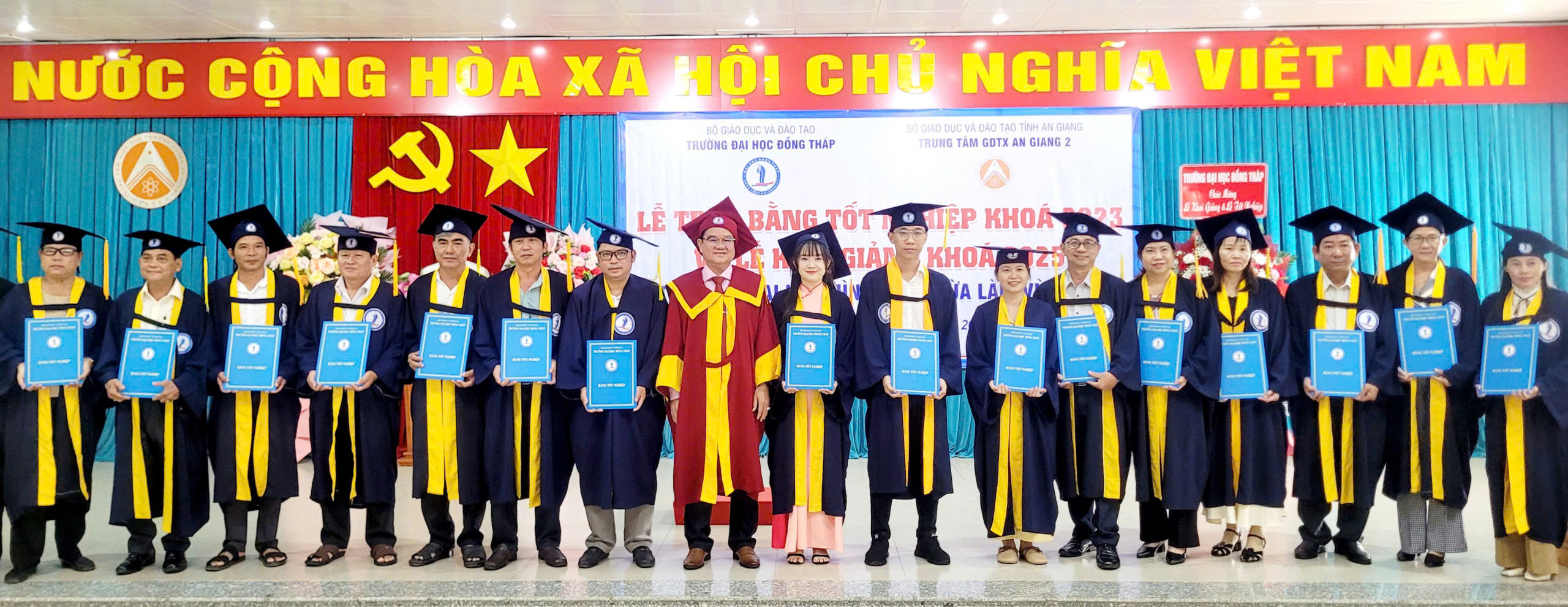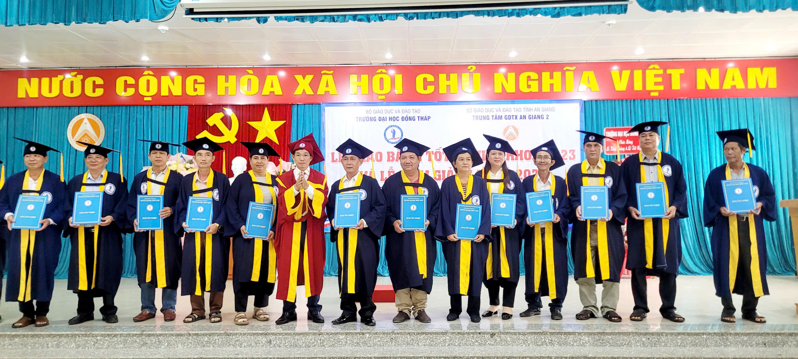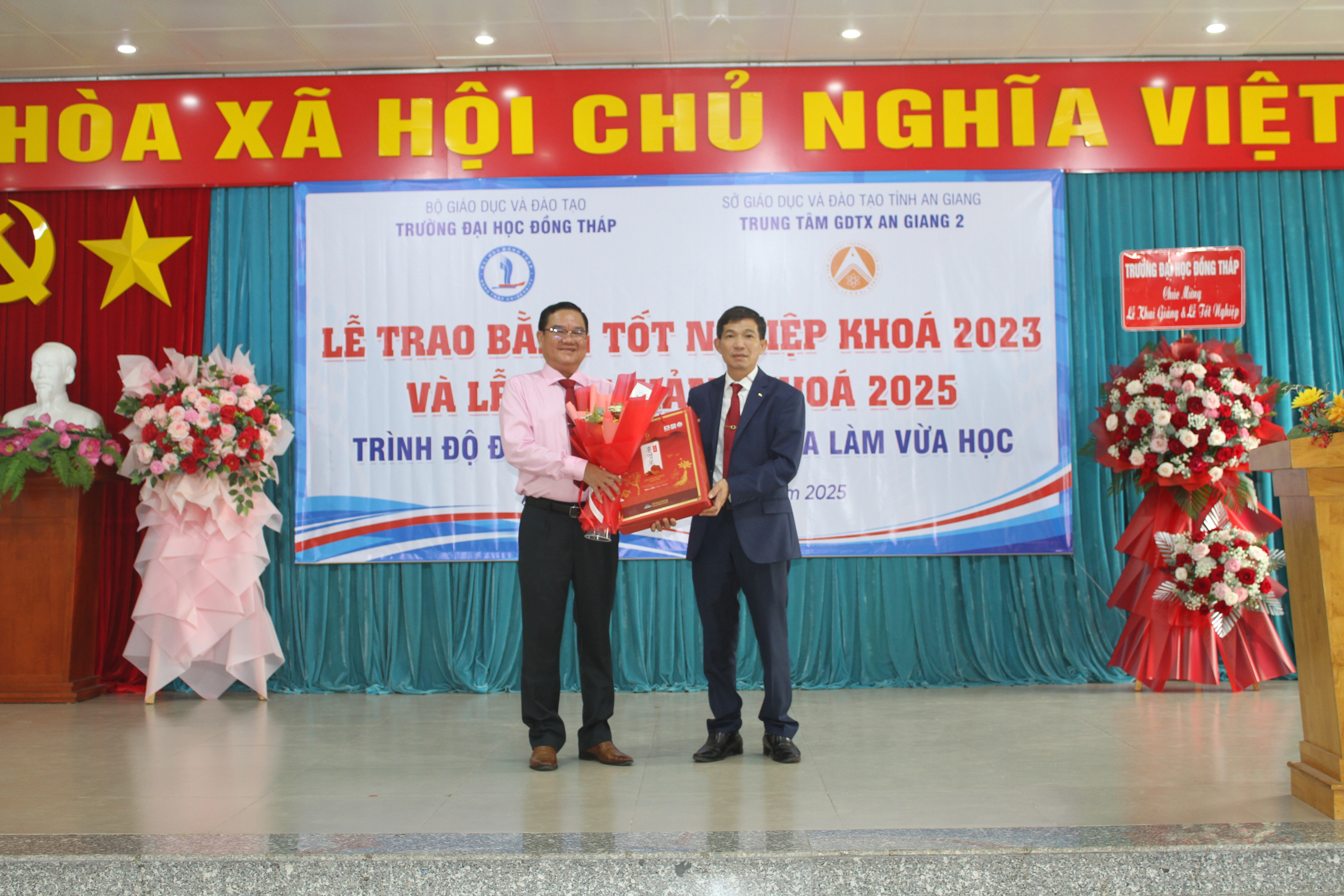 Phát biểu tại buổi lễ, đại diện lãnh đạo Đại học Đồng Tháp và Trung tâm Giáo dục thường xuyên An Giang 2 đã gửi lời chúc mừng nồng nhiệt đến các tân cử nhân, đánh giá cao tinh thần học tập và cống hiến của các học viên. Lãnh đạo cũng bày tỏ hy vọng rằng các tân cử nhân sẽ vận dụng sáng tạo những kiến thức, kỹ năng đã học vào thực tiễn công tác giảng dạy, góp phần vào sự nghiệp đổi mới và phát triển của ngành giáo dục tỉnh nhà.